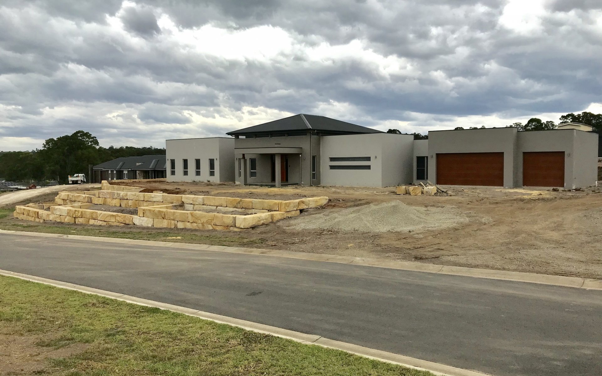 Now, this is the project we have been eagerly waiting to share with you. We like to call it, the sandstone standout! With quality Sandstone at the forefront of this design, this stunning home received much needed stylish and functional retaining walls, complete with the addition of some customised Travertine feature stairs. Although this project only involved two, core services, the before and after photos will show you just how much of a large scale project this was. Another quality and sophisticated project by our hardworking All In One team.